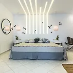 Exclusive Studio公寓距离阿基亚安娜海滩有10分钟的车程.房间有无限网络. 公寓铺大理石的地板.